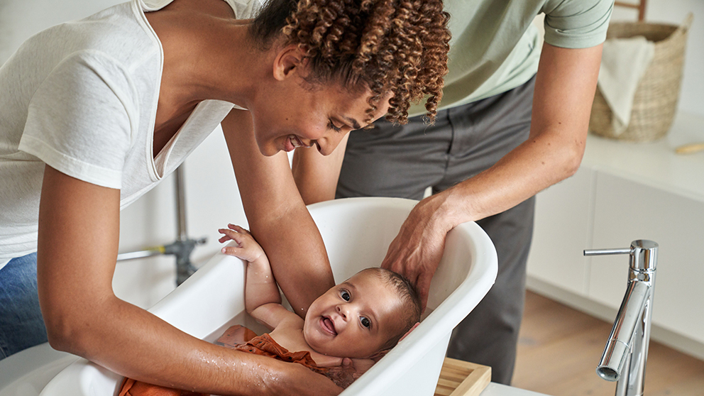 Základem péče o dětskou pokožku jsou od nejútlejšího věku koupele. Není však potřeba koupat celé tělo každý den, a to ani v případě miminek. „Zpočátku stačí koupat miminko dvakrát až třikrát týdně, maximálně 5 minut a při teplotě 37 stupňů. Zadeček oplachujeme několikrát denně při výměně plenek,“ radí pediatrička Kateřina Konopásková, lékařka pro děti a dorost z Fakultní nemocnice Motol v Praze a členka týmu Pediatrie Litochleby. Stejné doporučení platí i pro batolata, u předškoláků by pak délka koupele neměla přesáhnout 15 minut. A pokud dítě trápí atopický ekzém, je vhodnější koupel ještě kratší – do 10 minut –, ideální je ale pouze dítě sprchovat.