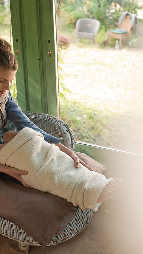 - 2 širší kusy látky k zajištění zábalu na lýtkách
