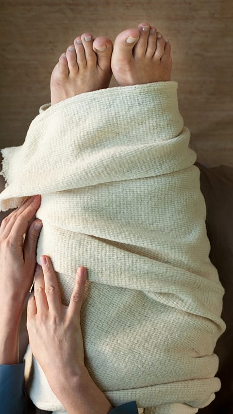 Zábaly lýtek jsou při horečkách velmi účinné, přičemž jsou vhodné i pro děti od jednoho roku věku. Aplikovat je však lze jen v případě, že jsou vaše nohy teplé! Lehněte si a pod nohy vložte osušku, vezměte dva kusy látky a namočte je do teplé vody. Následně obtočte látku kolem lýtek, zábal zajistěte další vrstvou suché látky, a nakonec nohy zabalte do osušky. Jakmile se vnitřní látka zahřeje, látku vyjměte a nahraďte jí chladnější. V aplikaci pokračujte tak dlouho, dokud horečka neklesne. Pokud však chodidla zchladnou, ošetření okamžitě ukončete.